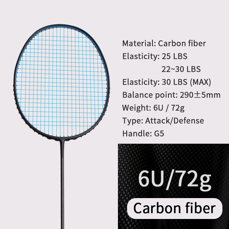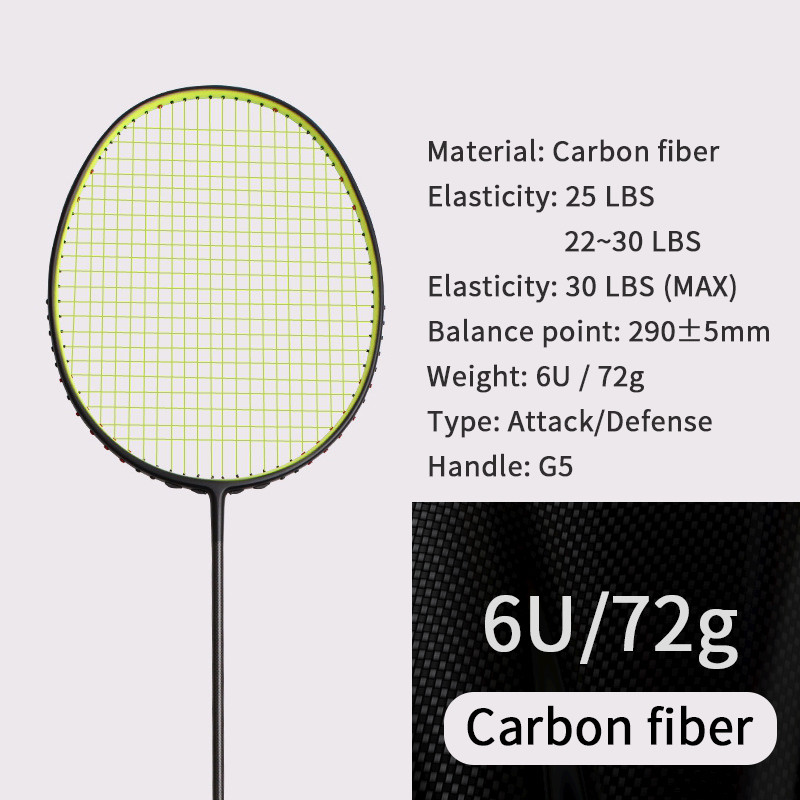 – Materijal: Carbon ,grafit – Težina reketa: 6U / do 75 g – Veličina ručke: G5 – Točka ravnoteže: 295 mm – Duljina: 675 mm * Dostupno u nekoliko boja * Cijena uključuje odgovarajuću torbu, grip i zaštitnu traku za reket